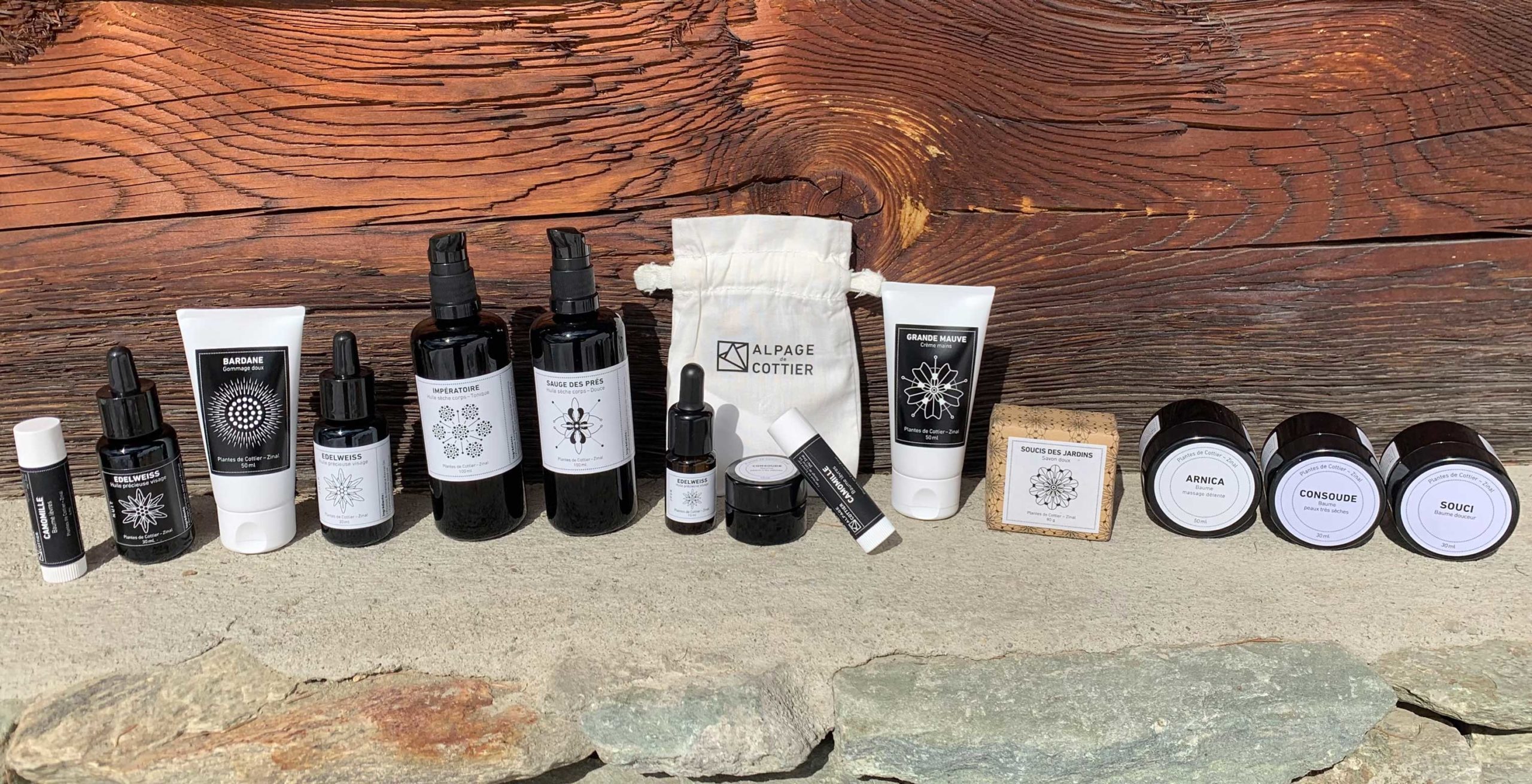 ** Des plantes, au cœur de nos formules, qui proviennent de l’alpage. Elles sont soit cueillies dans les prés, soit cultivées dans notre jardin, au rythme de la terre et des saisons.