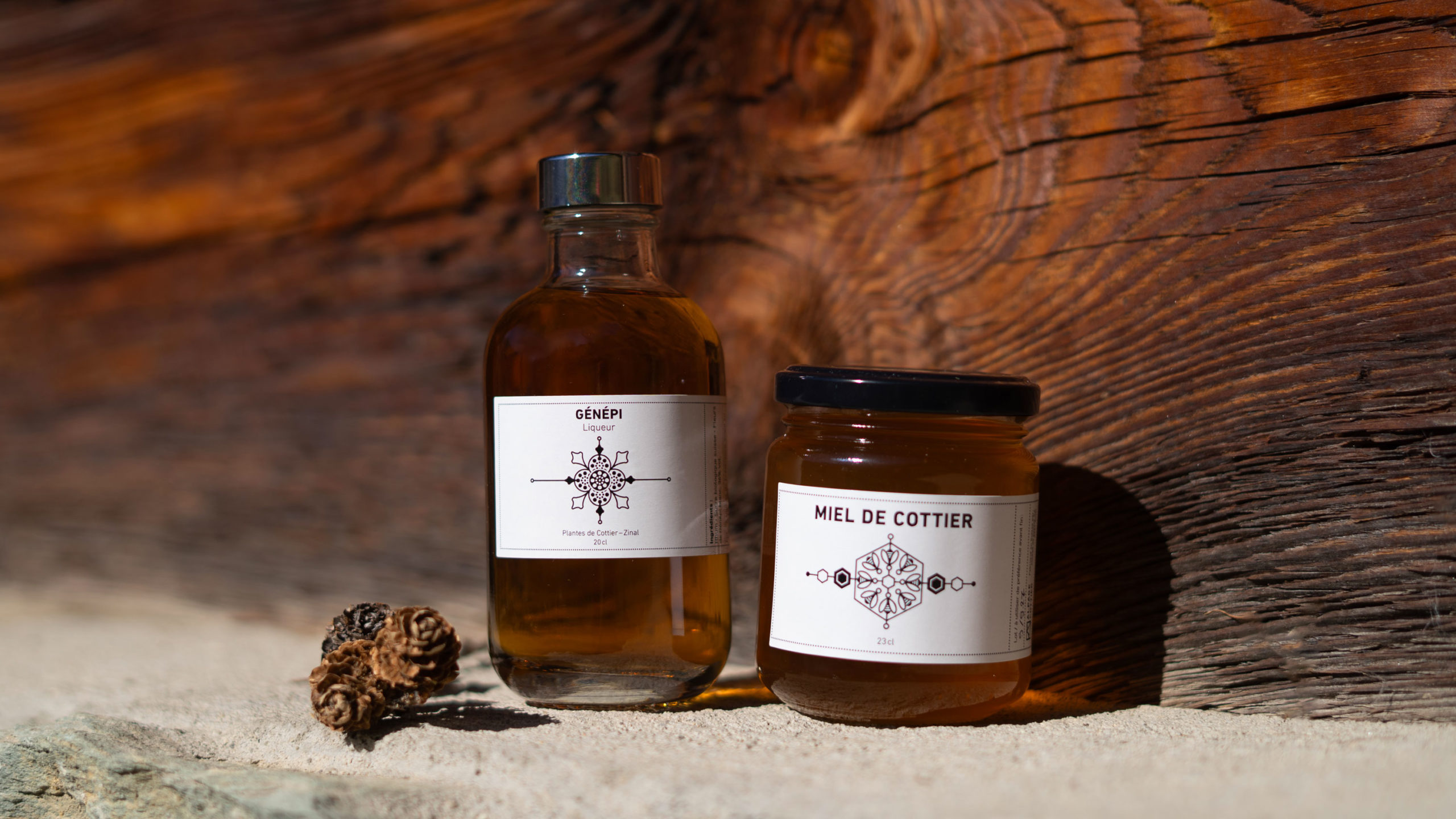 Liqueur de Génépi 20cl. Miel de Cottier 228ml.